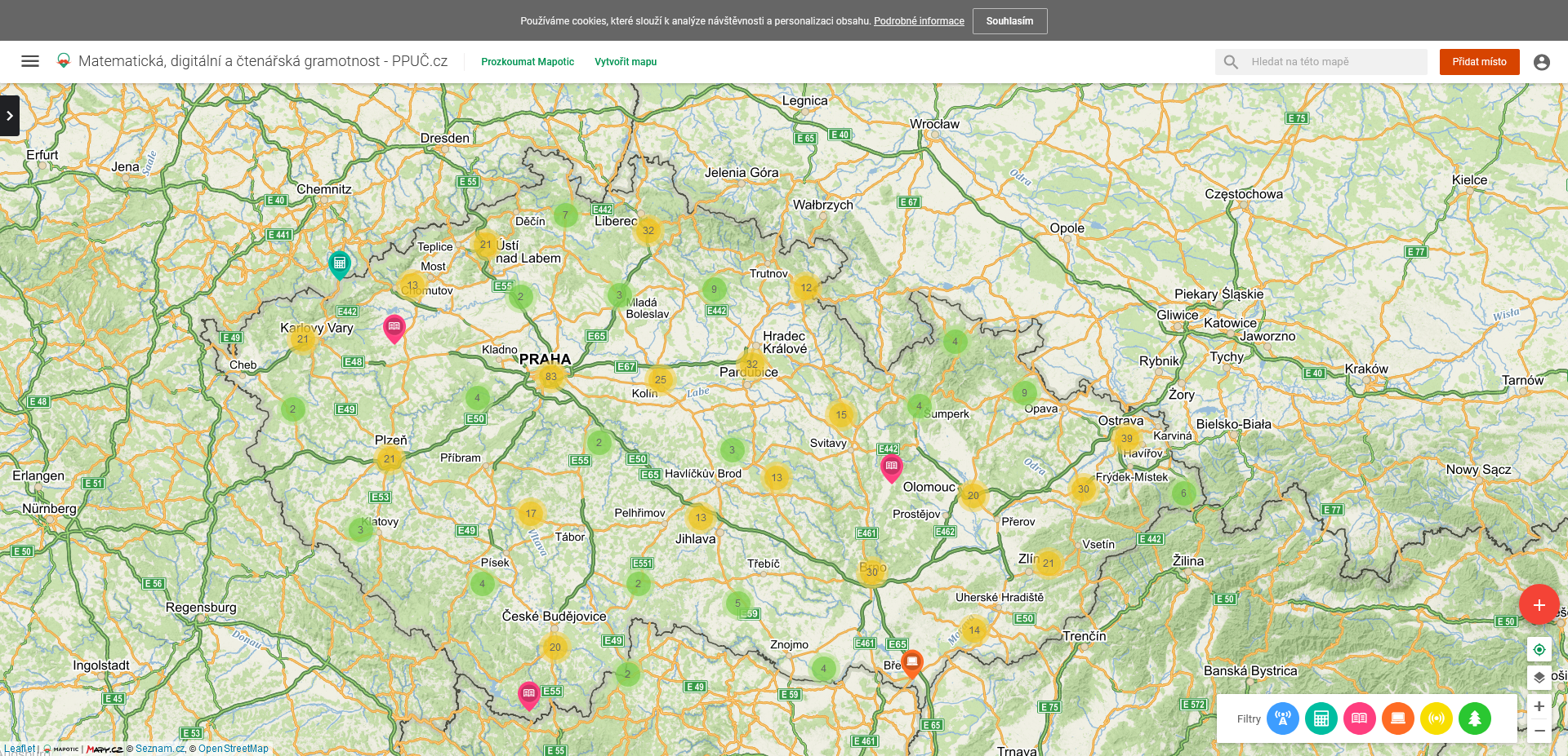V roce 2020 Národní pedagogický institut ČR spustil k Mezinárodnímu dni gramotností Mapu gramotností, ve které jsou vyznačeny instituce a organizace, které se zabývají čtenářskou, matematickou nebo digitální gramotností a pomáhají učitelům v rozvoji jejich zájmu či přímo realizují vzdělávací projekty či programy pro děti a žáky z MŠ a ZŠ. Pokud víte o některé další instituci, která na mapě není, anebo jste to právě vy, kdo máte s rozvojem gramotností zkušenost, přidejte informaci na mapu a obohaťte tak gramotnostní síť.