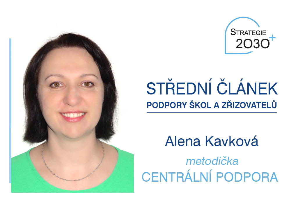 Představujeme Vám kolegyni, která od 1. dubna 2022 působí v centrálním týmu středního článku Ministerstva školství, mládeže a tělovýchovy. Alena Kavková odpovídá na online dotazy, které posílají ředitelé mateřských a základních škol prostřednictvím e-mailové poradny stredniclanek@msmt.cz.