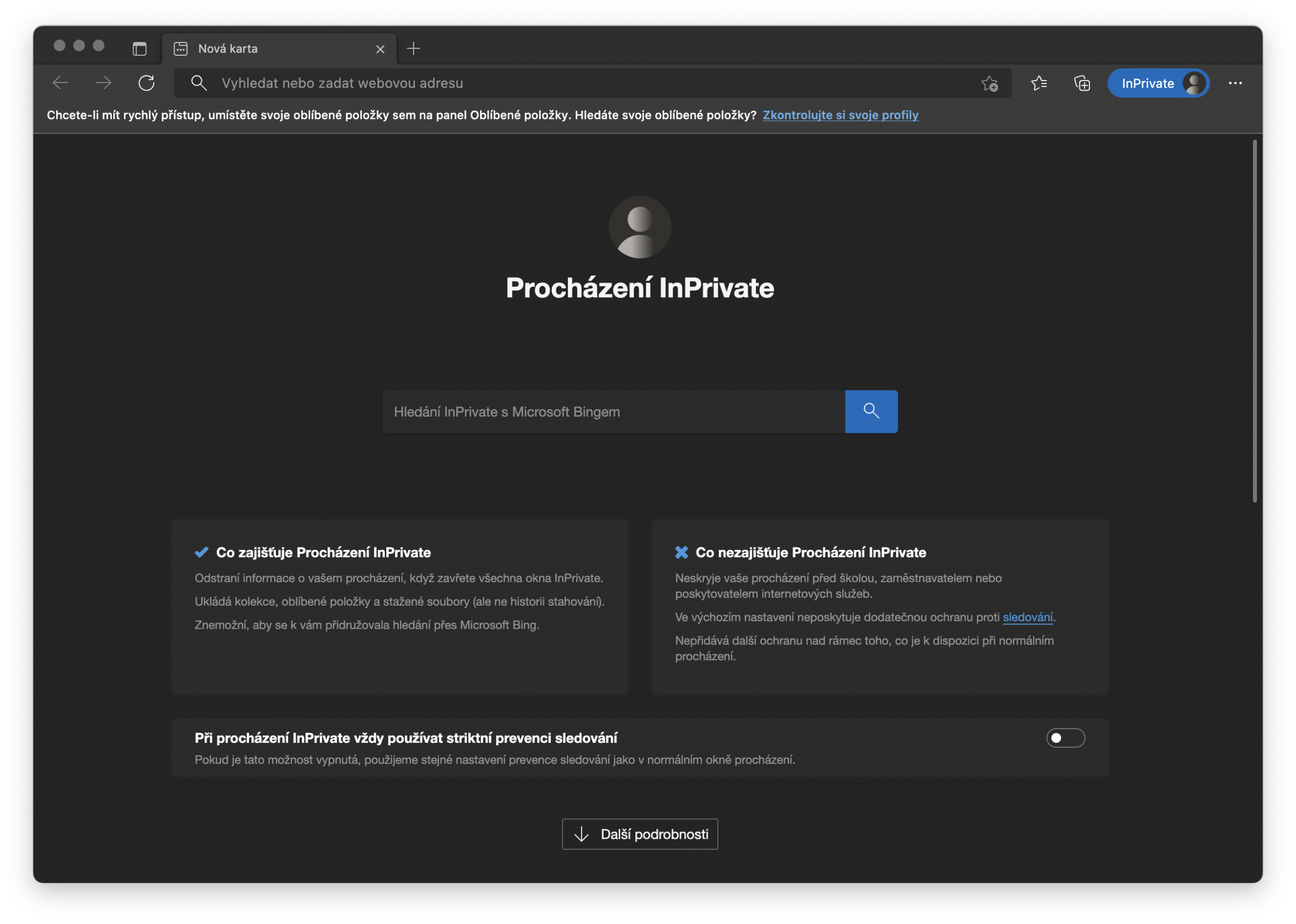 Co soukromé procházení neumí? K čemu neslouží?