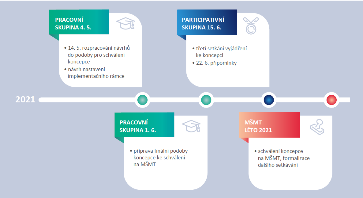 Expertní pracovní skupina se rozdělila na 4 menší podskupiny, které vždy vede jeden garant z týmu MŠMT a nyní se zabývají následujícími okruhy: