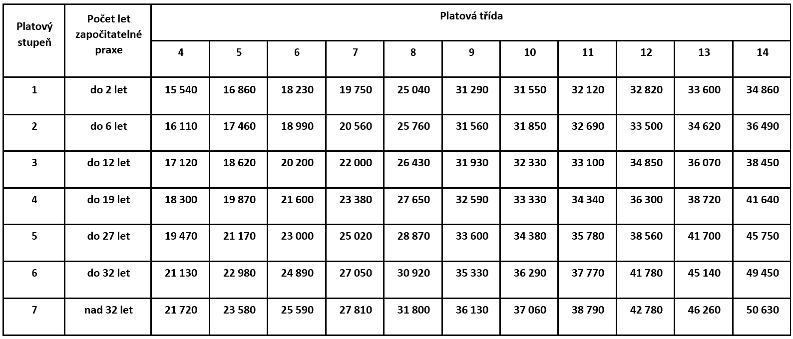 Platové tarify zaměstnanců ve školách a školských zařízeních od 1. 1. 2022