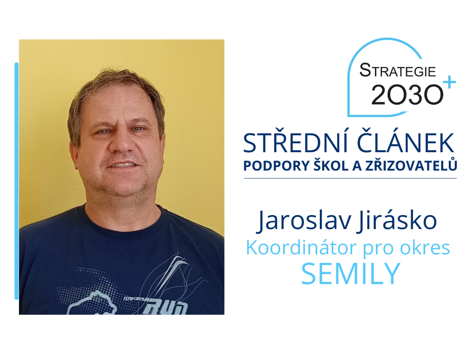Jaroslav Jirásko působí dvacet jedna let jako ředitel základní školy v Lázních Bělohrad, je viceprezidentem Asociace ředitelů základních škol a zakládajícím členem Učitelské platformy. Publikuje v časopisech Řízení školy, Učitelské noviny a v internetovém magazínu Rodiče vítáni. V médiích vystupuje jako komentátor a glosátor českého školství, specializuje se na profesní portfolia a strategické řízení výuky. Má bohaté zahraniční zkušenosti z Finska, Velké Británie, Rakouska, Polska, Nizozemska a Chorvatska, je členem několika expertních skupin Národního pedagogického institutu ČR. Jeho profesní zkušenosti, moderní pohled, chuť a odhodlání dávají tušit, že má pilotní projekt středního článku v okrese Semily dobře našlápnuto.