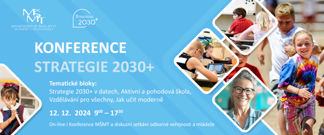 Dne 12. prosince 2024 se uskuteční další výroční konference s názvem „Strategie 2030+“, kterou každoročně pořádá Ministerstvo školství, mládeže a tělovýchovy. Cílem této akce je představit aktuální stav implementace Strategie 2030+ a prezentovat stěžejní témata, jež jsou obsažena v Dlouhodobém záměru vzdělávání a rozvoje vzdělávací soustavy ČR do roku 2027. Konferenci úvodním slovem zahájí ministr školství Mikuláš Bek a budou jí provázet Ti, kteří mají Strategii i Dlouhodobý záměr České republiky na starosti.