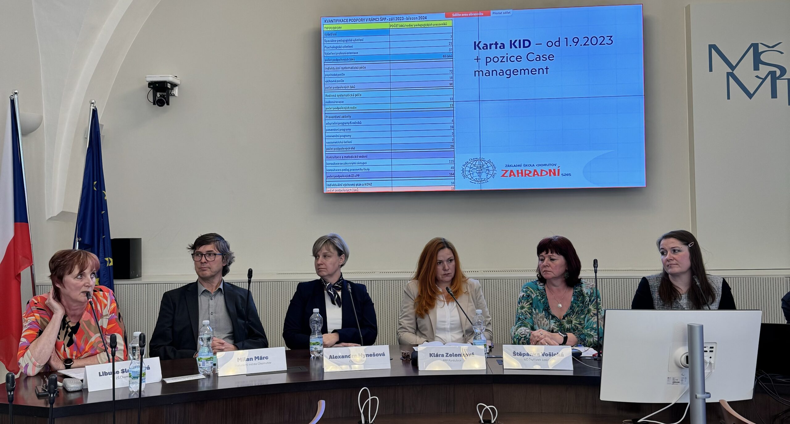 Předsedkyně SOFA a lektorka Univerzity Karlovy Lenka Felcmanová se v prvním bloku odborného panelu věnovala důvodům vzniku Karty KID, na které spolupracovala čtyři ministerstva a tehdy ještě Česká odborná společnost pro inkluzivní vzdělávání, z.s. – nyní Society for All,z.s. Mezioborová spolupráce rezonovala celým panelem jako nezbytná součást efektivní a včasné pomoci ohroženým dětem. Zmocněnec pro wellbeing Ferdinand Hrdlička z MŠMT zároveň jako neoddělitelnou součást úspěšné implementace Karty KID uvedl podporu neziskovým sektorem či akademickou sférou. Škola podle něj má hrát roli leadera komunity v regionu, který má ty pravomoci a schopnosti zajistit kooperaci. Předností Karty KID je její jednoduchost a určitá „strohost“, která rychle pomůže rozpoznat signály ohrožení dítěte a navede, jak postupovat.