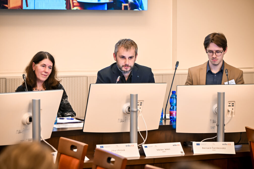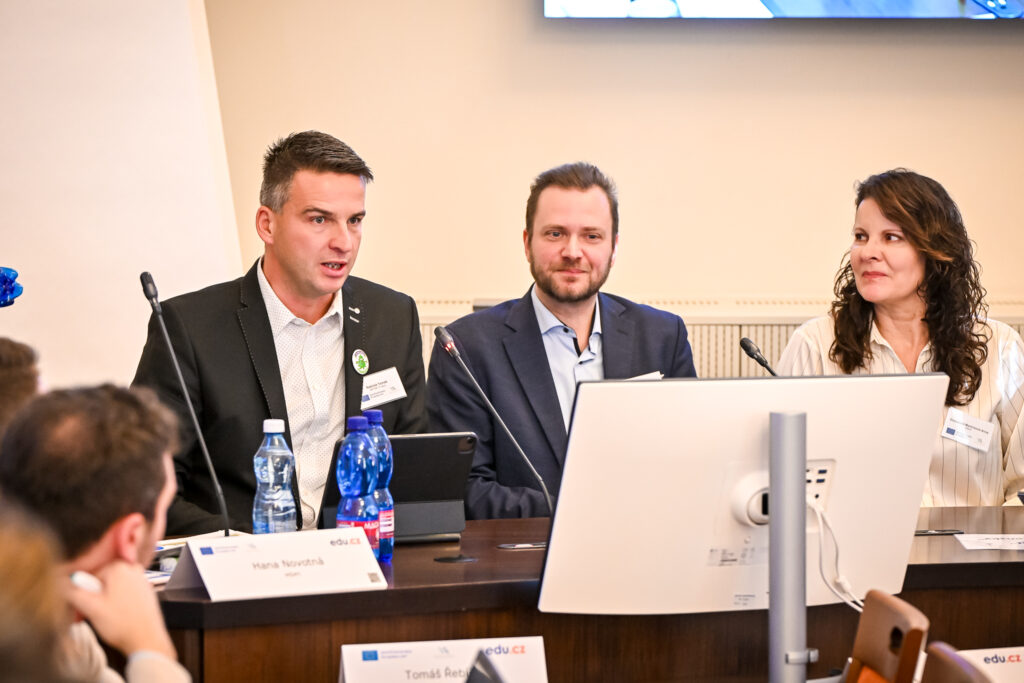 Po obědové pauze následoval druhý blok zaměřený na digitální dovednosti žáků a umělou inteligenci (AI). Pozvání přijali vedoucí oddělení digitalizace ve vzdělávání v NPI ČR Ondřej Neumajer, ředitel a zakladatel vzdělávacího programu Jeden svět na školách Karel Strachota a hlavní analytička výzkumné agentury STEM Jitka Uhrová.