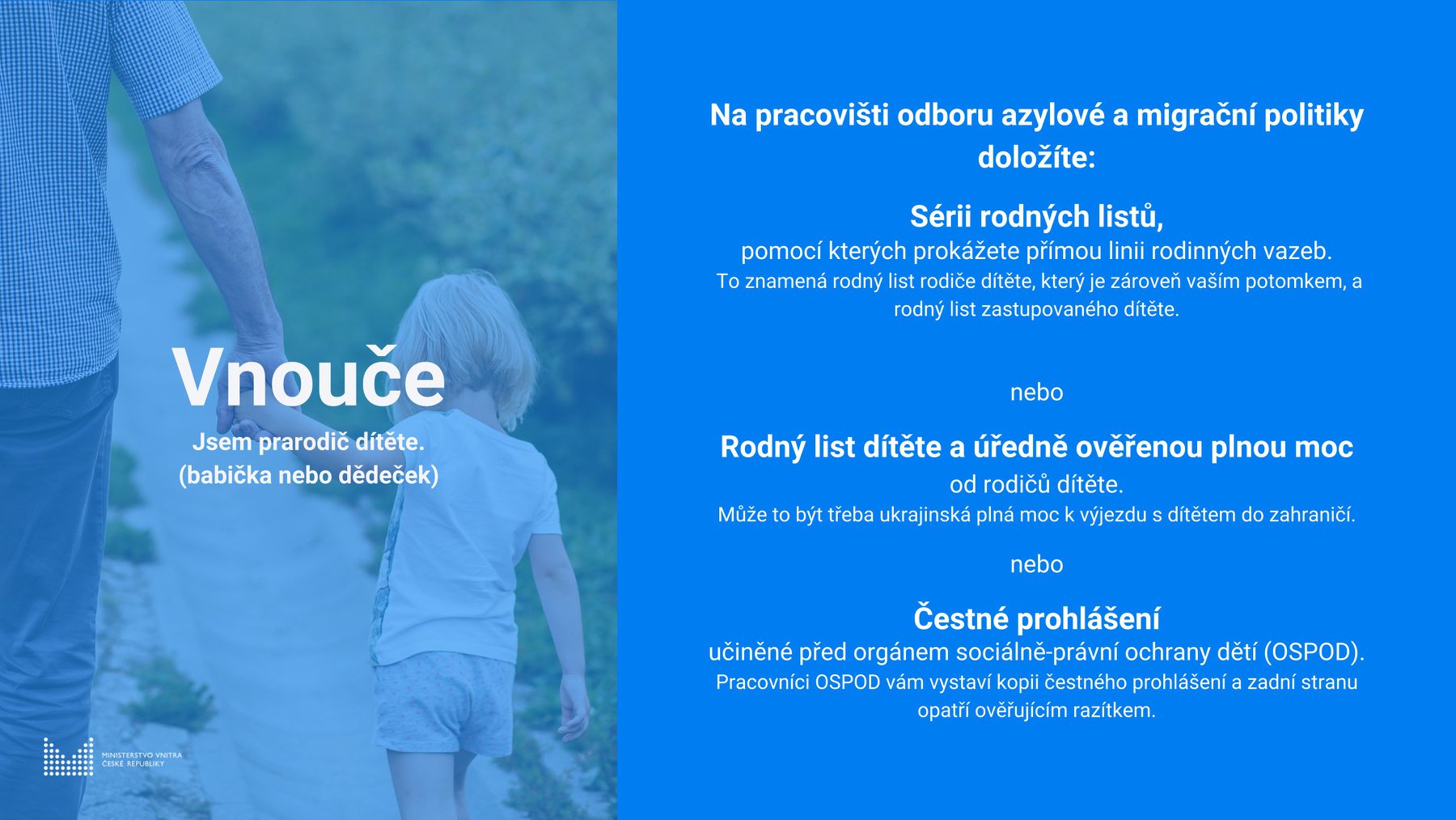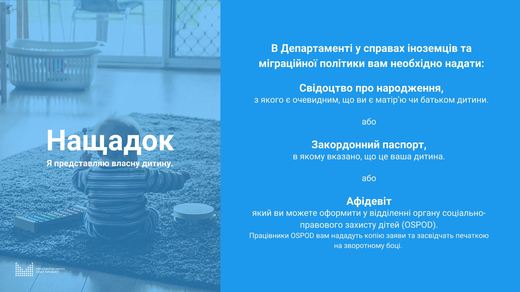 Tzv. re-registrace bude otevřena do 31. 3. 2023. Veškeré úkony jsou zcela zdarma. Níže naleznete stručné informační letáčky (stačí kliknout na obrázky níže) jak v ukrajinském, tak i v českém jazyce. Na Facebooku Odboru azylové a migrační politiky MV Naši Ukrajinci jsou k dispozici také podrobnější videotutoriály a opět dvojjazyčně.